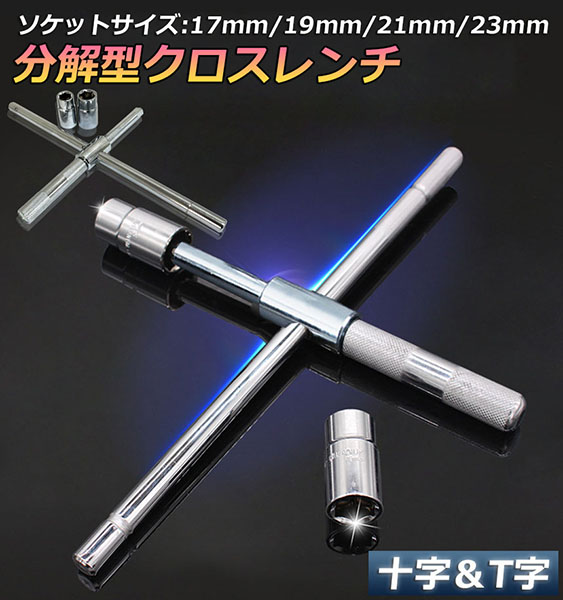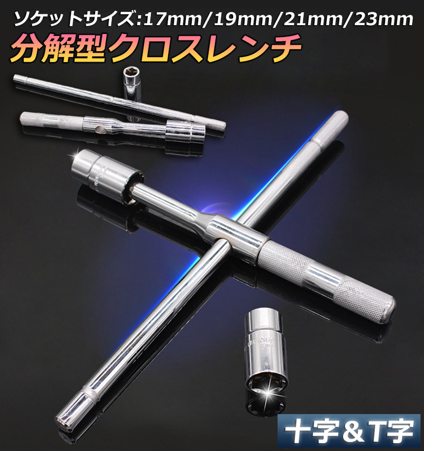 十字レンチ クロスレンチ 分解式 T字 十字 空転式 回転可能 フリーグリップ 早回し 17mm 19mm 21mm 23mm 車 タイヤ交