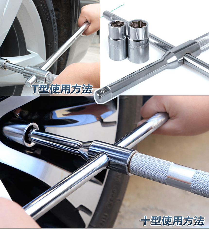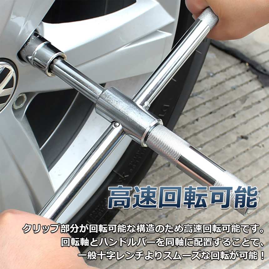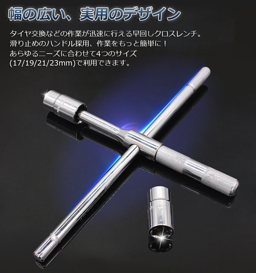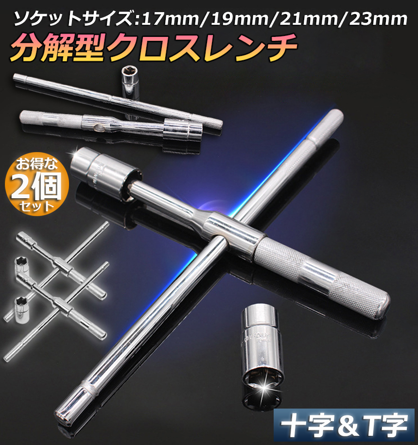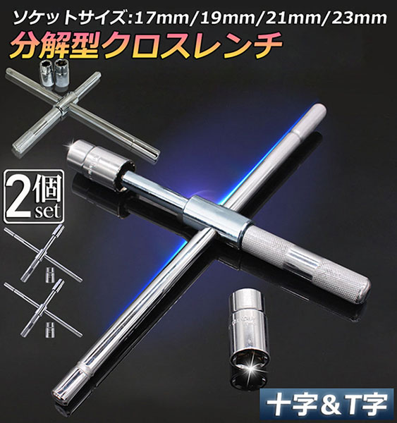 十字レンチ 2個セット クロスレンチ 分解式 T字 十字 空転式 回転可能 フリーグリップ 早回し 17mm 19mm 21mm 23mm