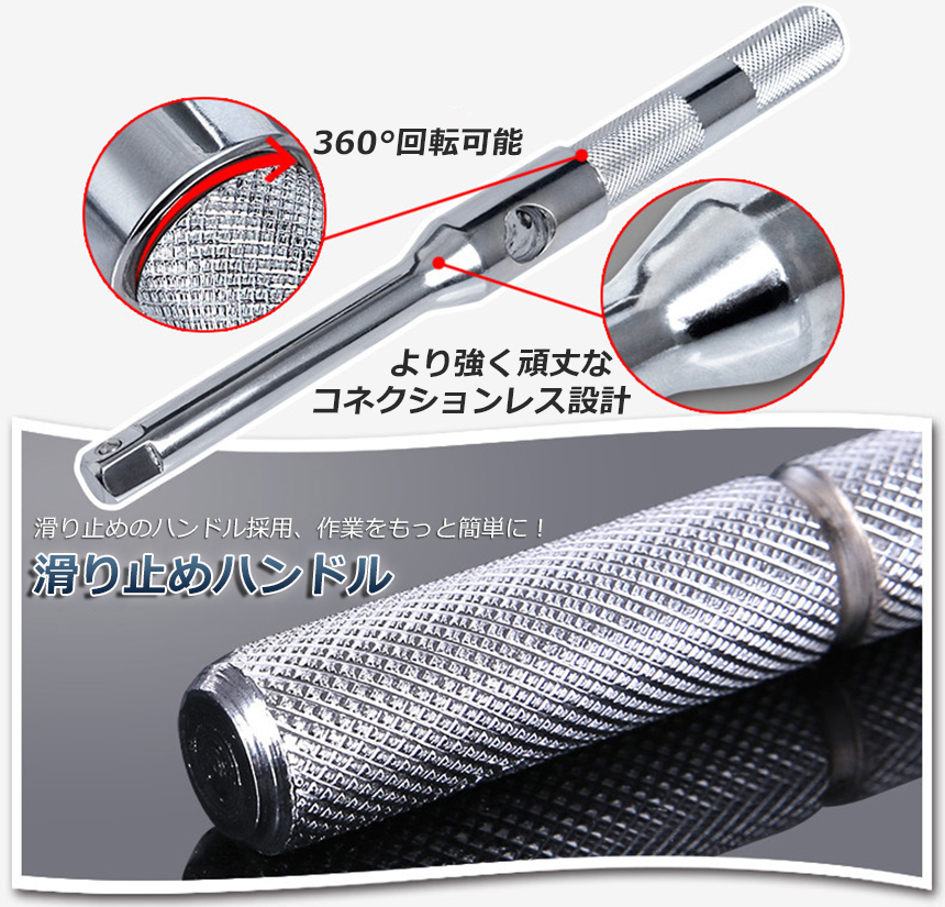 グリップ部が空転可能な構造のため、高速回転を可能とした十字レンチです。