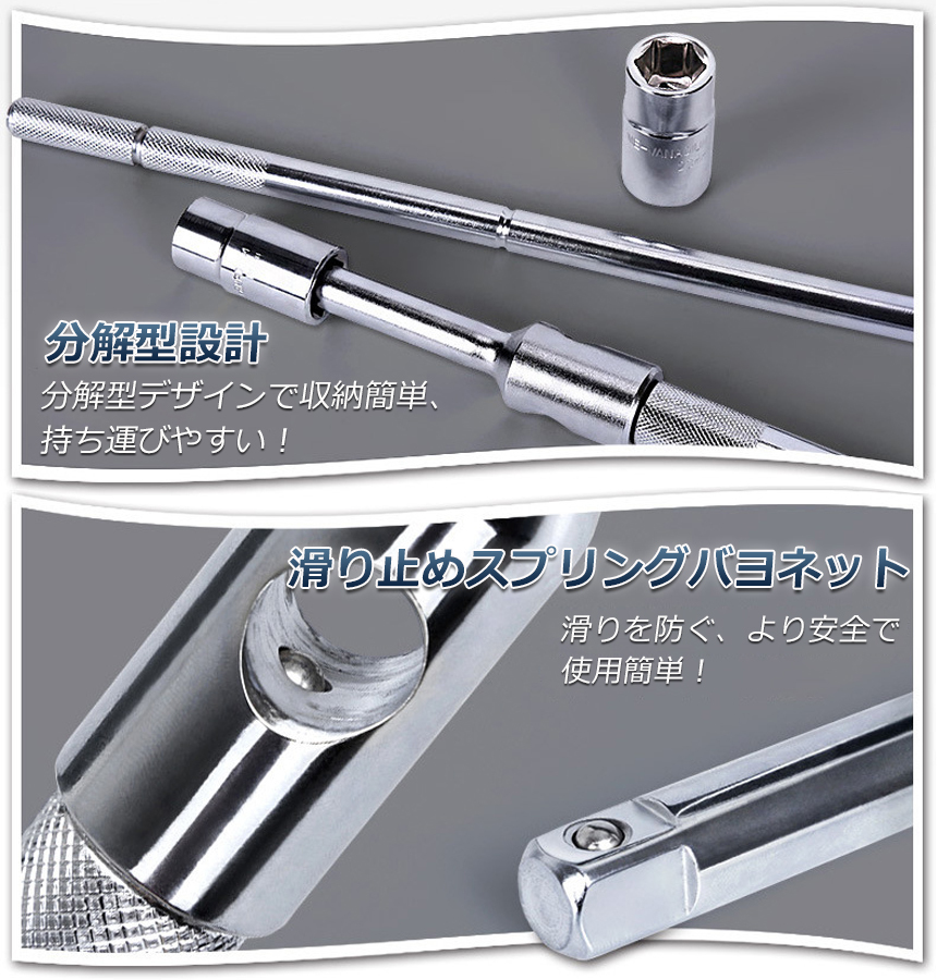 収納に困る十字レンチですが、横バーを引き抜いてコンパクトに収納できる分解式になっております!!