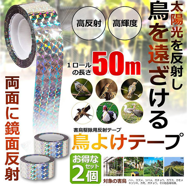 鳥よけテープ 50m 2個セット 鳩よけ カラスよけ 害鳥対策 防鳥 吊り下げ式 庭 ガーデン 鳥 鳩 スズメ 防鳥ホログラムテープ 菜園