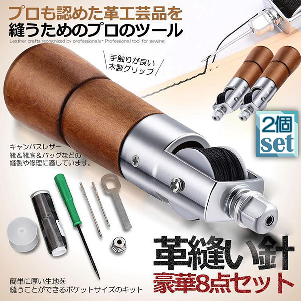 レザークラフト 針 手縫い 2個セット レザークラフト用 スピーディーステッチャー 手縫機 片手で縫える ハンドミシン 糸通し器 革縫い針セ