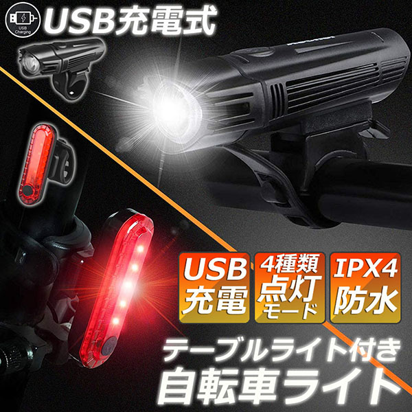 【USB充電式】: USB 充電式自転車、ヘッドライト用の内蔵 2000mAh 充電式リチウム電池、テールライト用内蔵 330mAh 充電式リチウム電池。