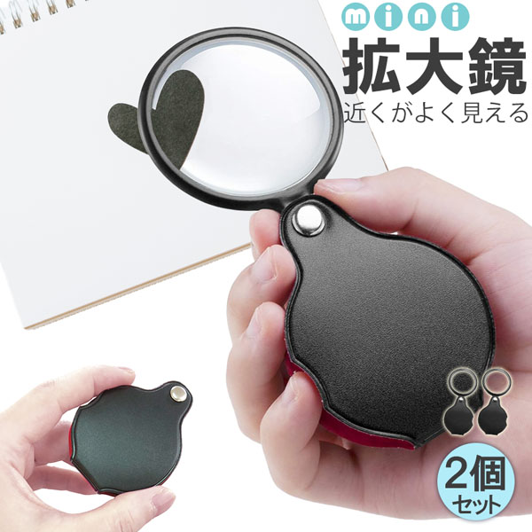 拡大鏡 ミニ拡大鏡 虫眼鏡 虫めがね 2個セット 小型 ミニルーペ 折り畳み 8倍 携帯 コンパクト 持ち歩き おしゃれ ケース一体型 セッ