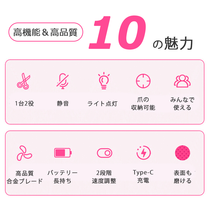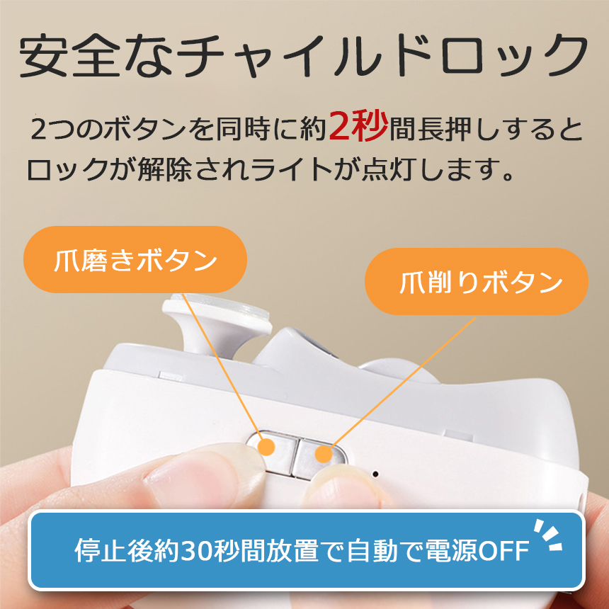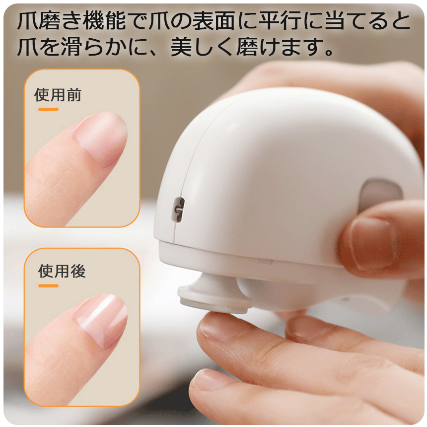 爪削り機能で爪を整えて爪磨き機能で爪を滑らかに♪