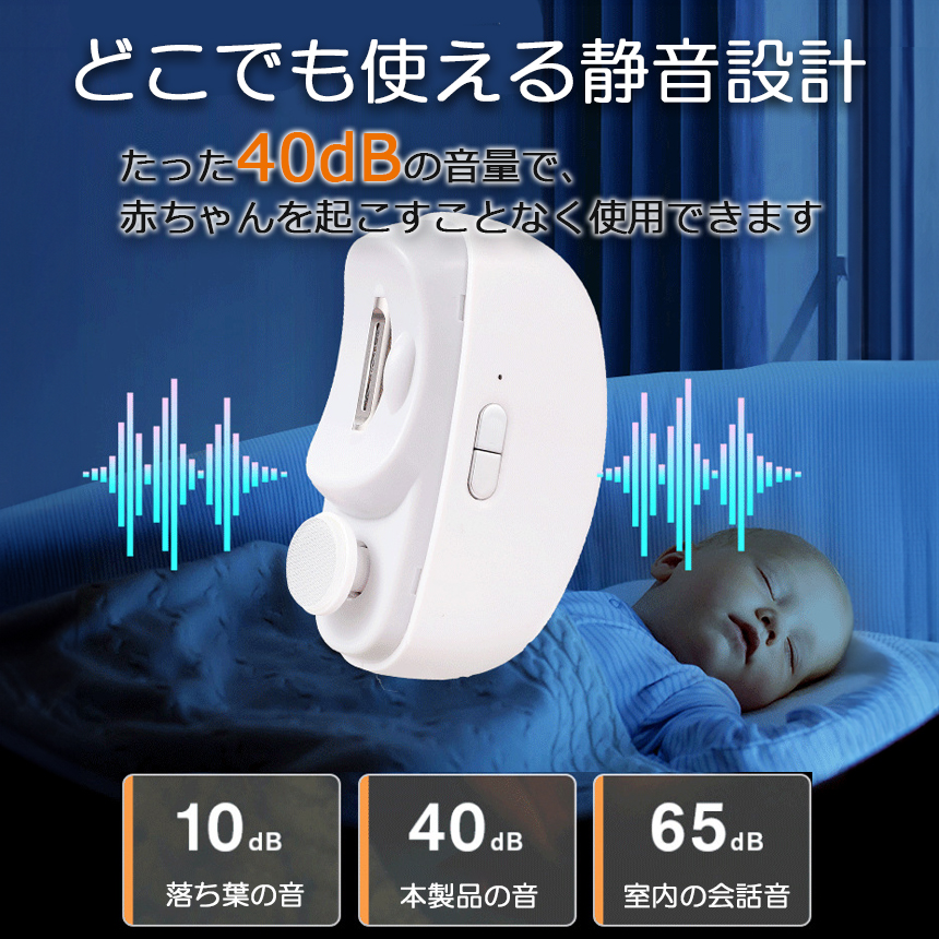 製品の駆動音はたったの40dBなので寝ている赤ちゃんを起こさずに使用することができます。