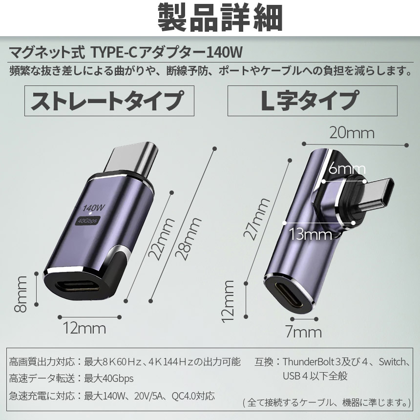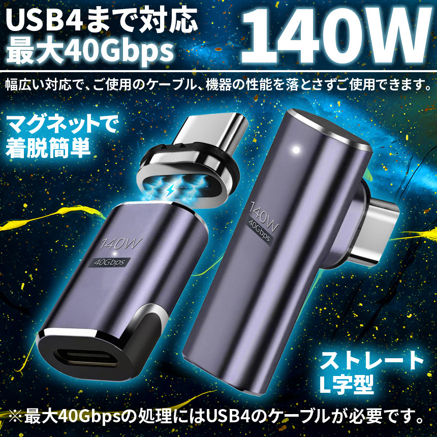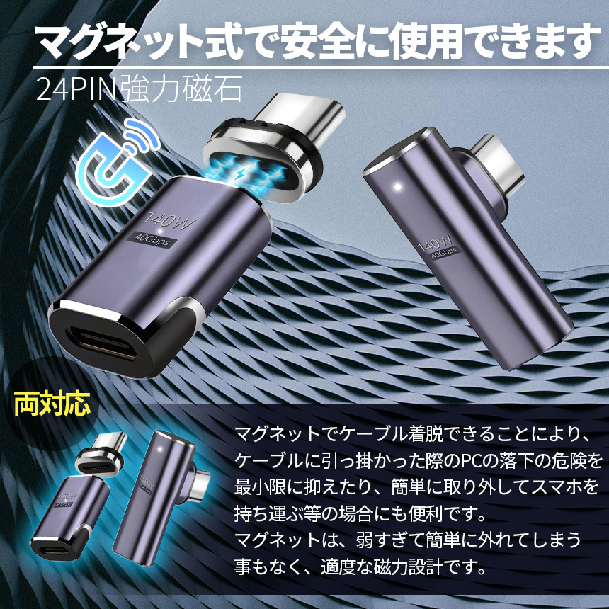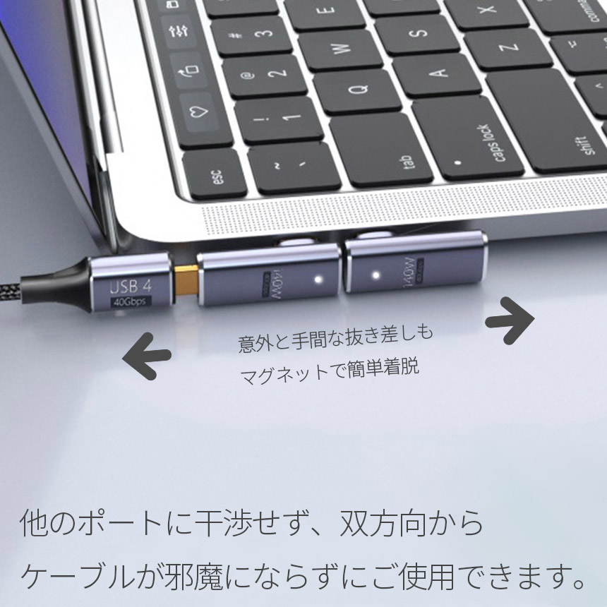 【TYPE-Cケーブルをマグネット式に変えられる高性能アダプター】ケーブルの抜き差し、とりまわしや角度などの煩わしさを解消してくれ、USB4対応、140Wの急速充電にも対応した高機能モデルです。【最大40Gbps高速データ転送】