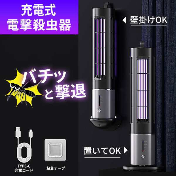 寄ってきた虫が内側の金属棒に触れると感電して殺虫!