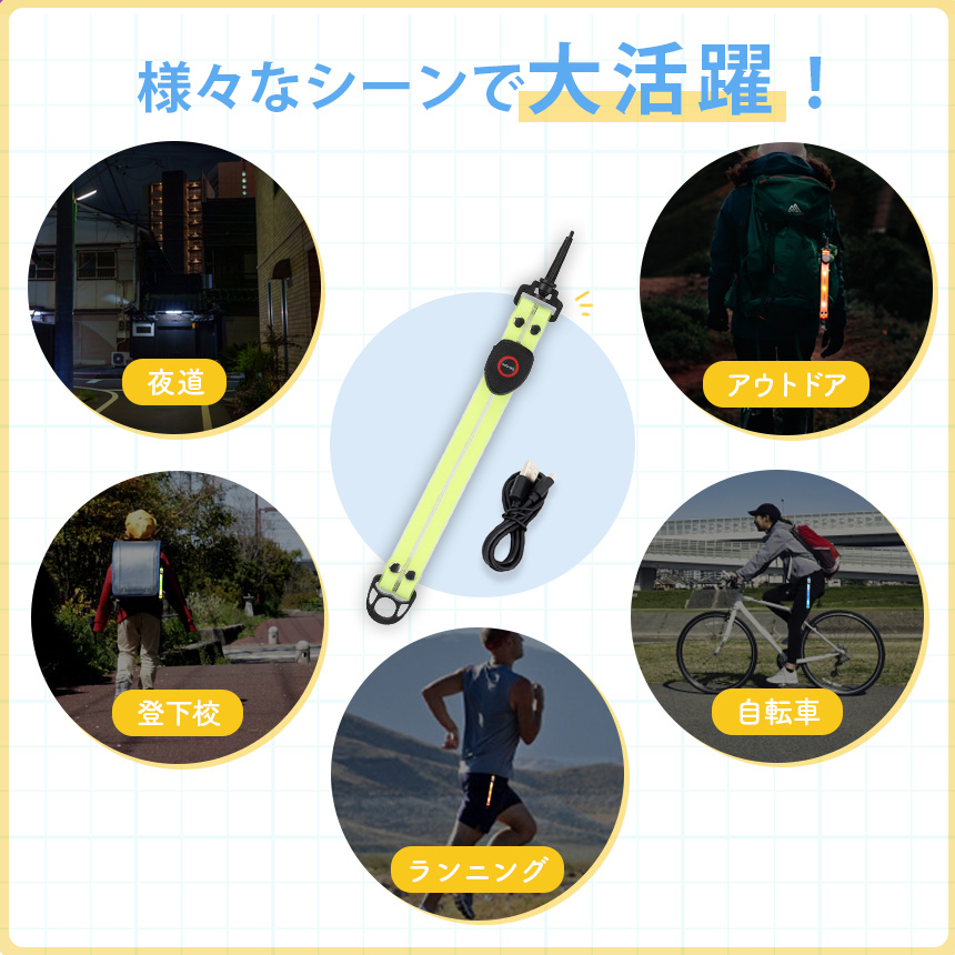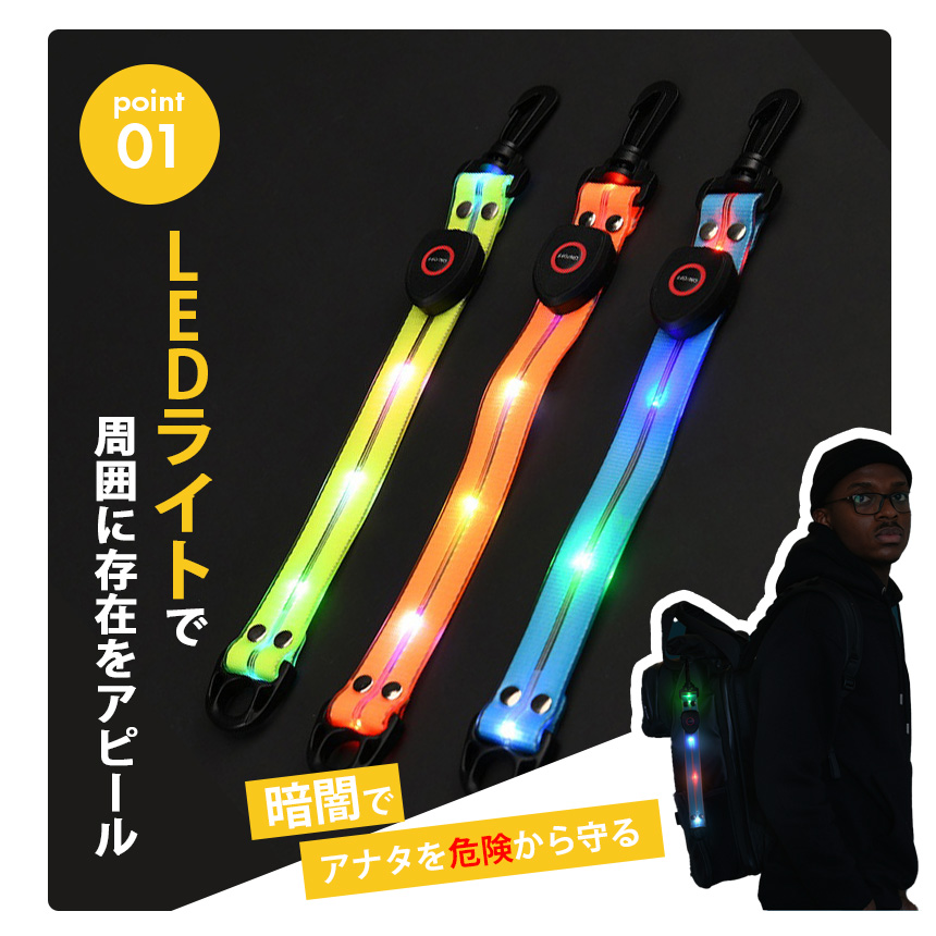 ヒヤッとしたことありませんか?・車に轢かれそうになったことがある...。・いつも街頭が少ない道を通るから不安...。・子供の登下校が不安...。暗闇の中には危険がいっぱいです!「充電式 光るストラップ」で解決できます!