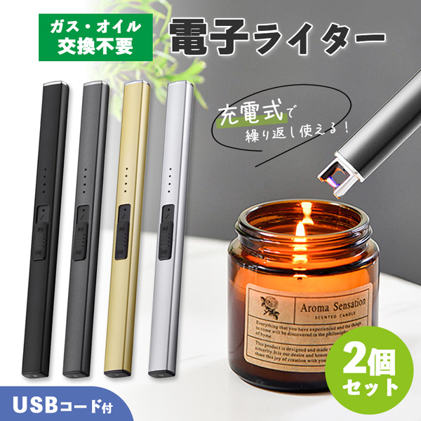 電子ライター 2個セット プラズマライター 強風で消えない ライター ブラック シルバー ゴールド グレー USB充電式 ガス オイル 不要