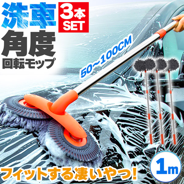 二つのモップがそれぞれ回転&角度が付く、優しくしっかり洗い上げる吸収率抜群モップ、約100cmまで好きな長さに伸縮!これを使えば簡単に愛車を綺麗にできます。モップ部分だけも外せるのでしっかりキレイに清潔のできます。