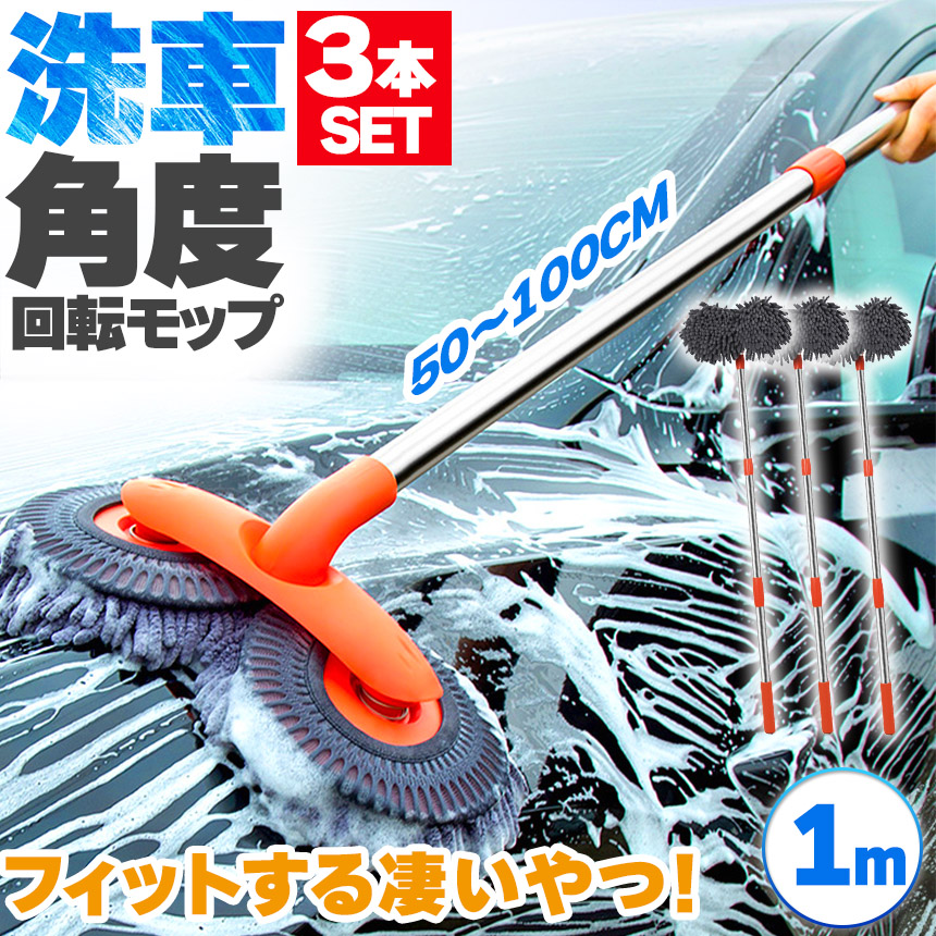 ※モップのみ(柄無し)の販売もございます。お買い上げ時はお間違いのないようにご注意ください。【角度と回転と伸縮で捗る!】二つのモップがそれぞれ回転&角度が付く、優しくしっかり洗い上げる吸収率抜群モップ、約100cmまで好きな長さに伸縮!これを使えば簡単に愛車を綺麗にできます。モップ部分だけも外せるのでしっかりキレイに清潔のできます。