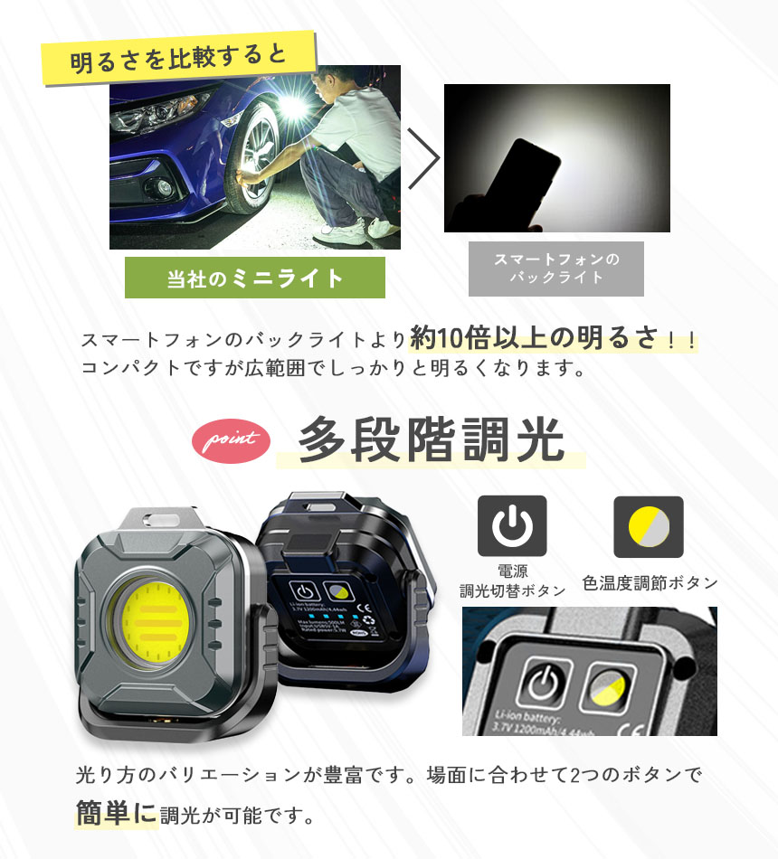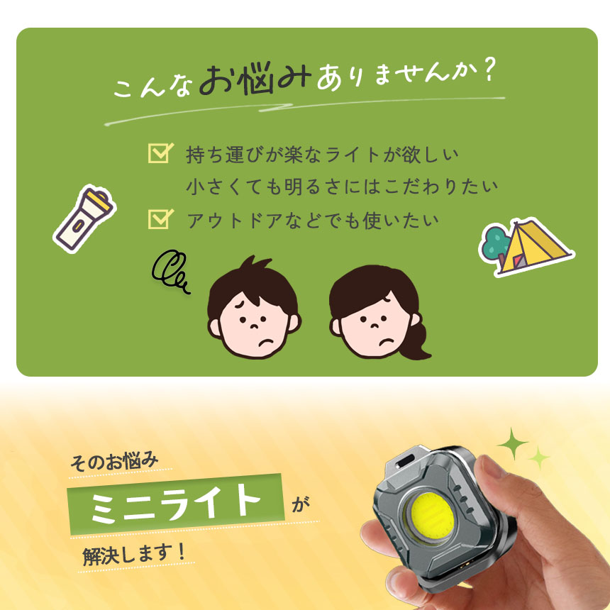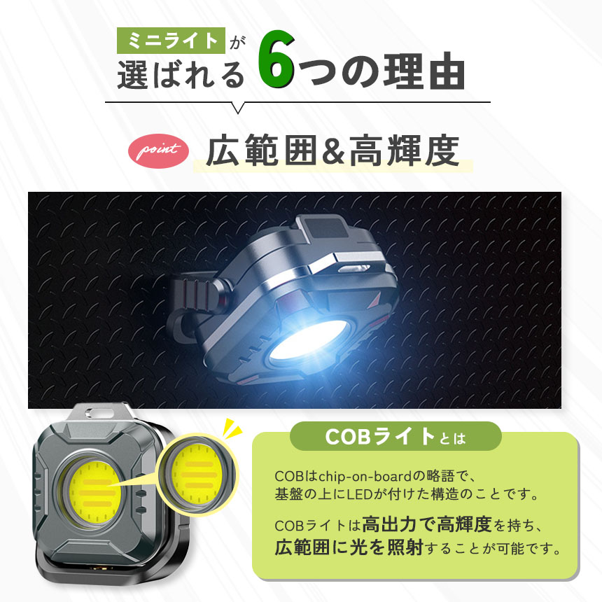 超コンパクト設計なのに高輝度!子供の登下校や停電・災害時、車点検などの作業、アウトドアなどなど小さくて明るいライトは様々なシーンで大活躍!!■商品の特徴■【広範囲&高輝度】COBライトは高出力で高輝度を持ち、広範囲に光を照射することが可能です。