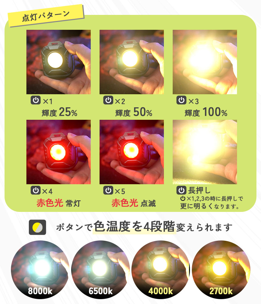 8000k、6500k、4000k、2700kの4段階で調光が可能です。