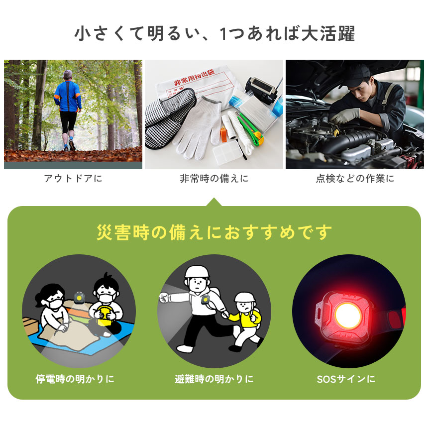 子供の登下校や停電・災害時、車点検などの作業、アウトドアなどなど