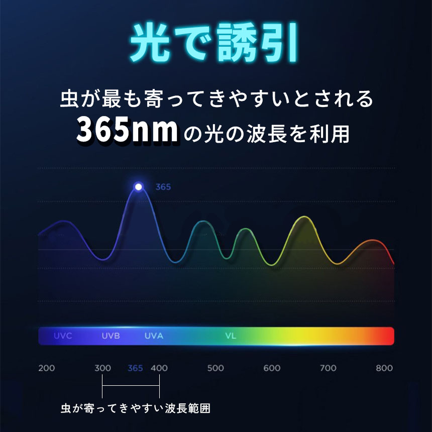 虫が最も寄ってきやすいとされる365nmの光の波長を利用して