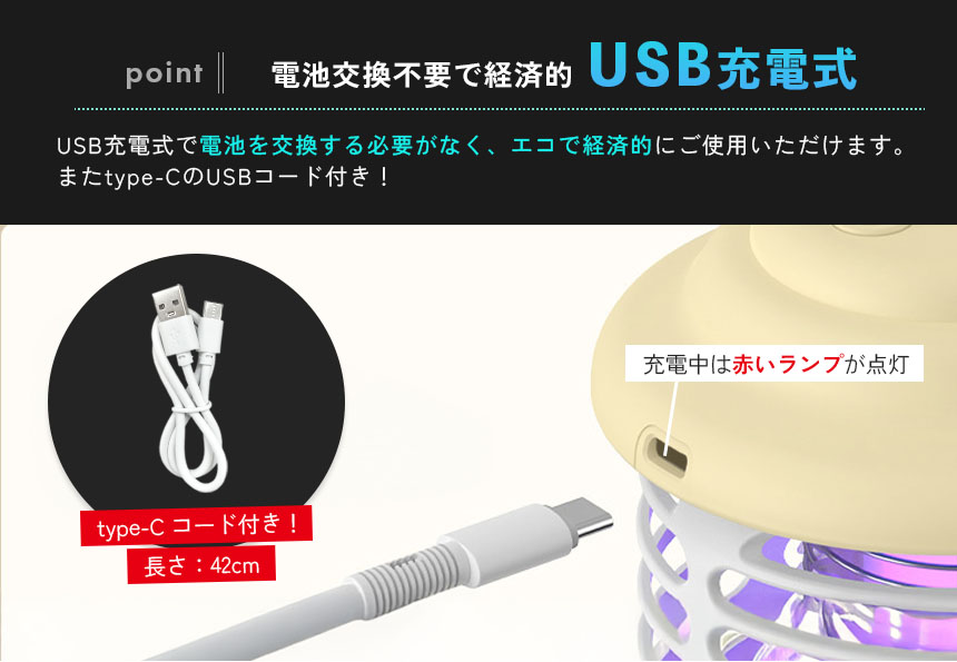 【電池交換不要で経済的 USB充電式】