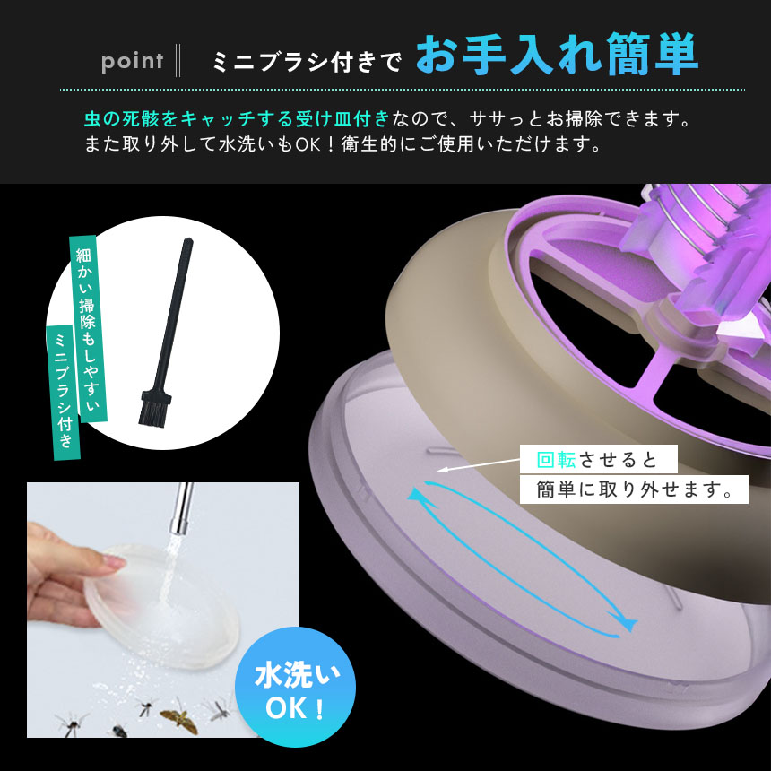 虫の死骸をキャッチする受け皿付きなので、ササっとお掃除できます。