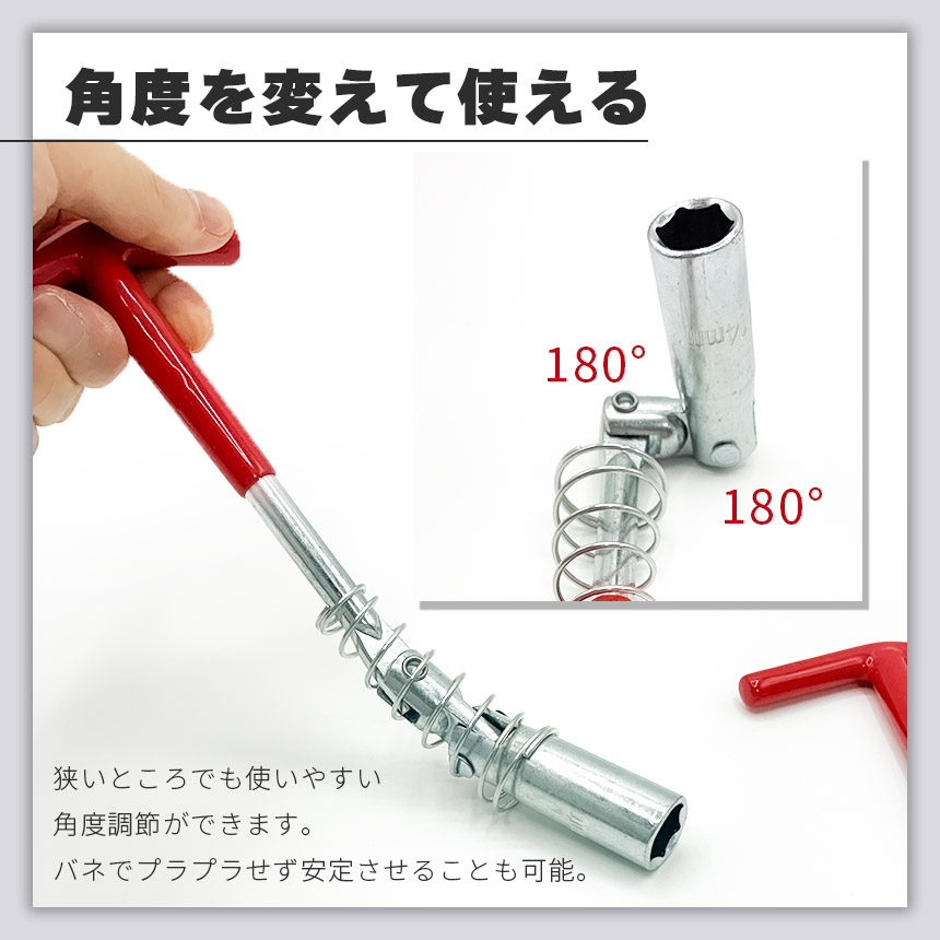スパークプラグ交換をもっと手軽に。角度自在のユニバーサル構造で、狭いエンジンルームでもスムーズ作業。