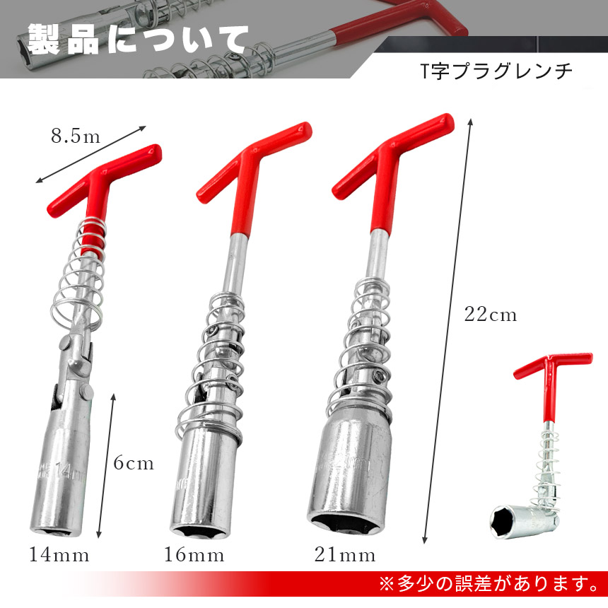 3本セットプラグレンチ ユニバーサル式 T型 14mm 16mm 21mm プラグソケット ソケットレンチ スパークプラグレンチ バイク 車