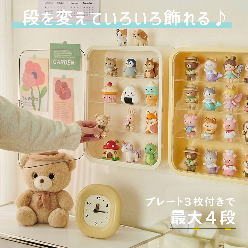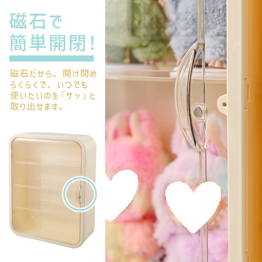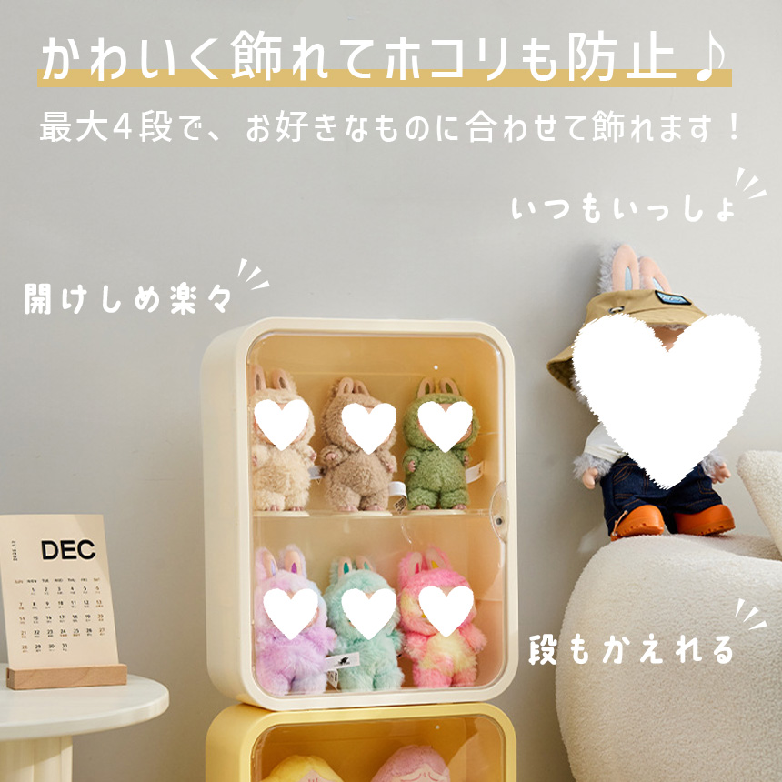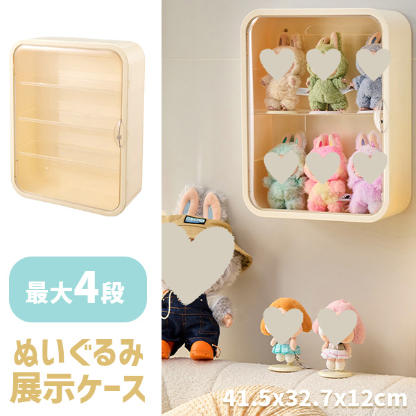 LABUBU ケース ぬいぐるみ フィギュア ディスプレイケース コレクションケース 収納 ホコリ防止 透明カバー付き スリム設計 おしゃれ インテリア 飾り棚 防塵 汚れ防止 傷つけ防止 収納ケース おしゃれ かわいい 壁掛け マグネット 最大4段