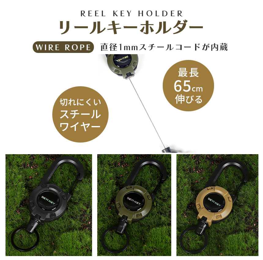 2個セットリールキーホルダー カラビナ 伸縮 リール 伸びる キーホルダー キーリール セキュリティカード 迷子防止 鍵 キーチェーン 定期 リール式 スマートキー フック 通勤 通学 アウトドア ミリタリー 釣り 登山 キャンプ 強力 ワイヤー 丈夫 紛失防止 小型 超軽量