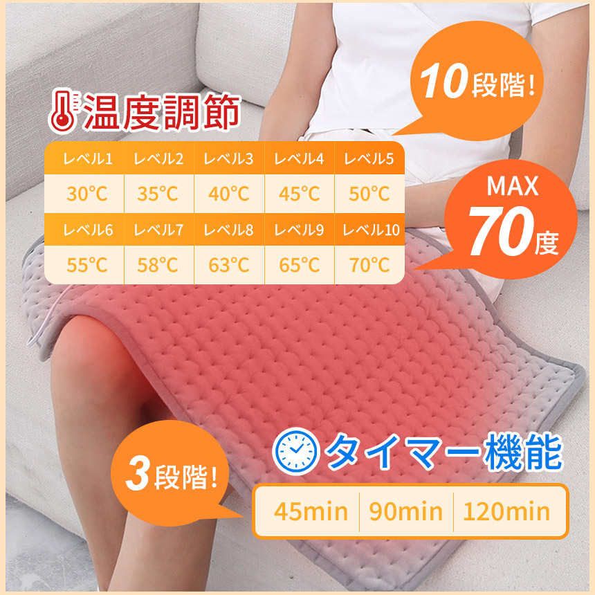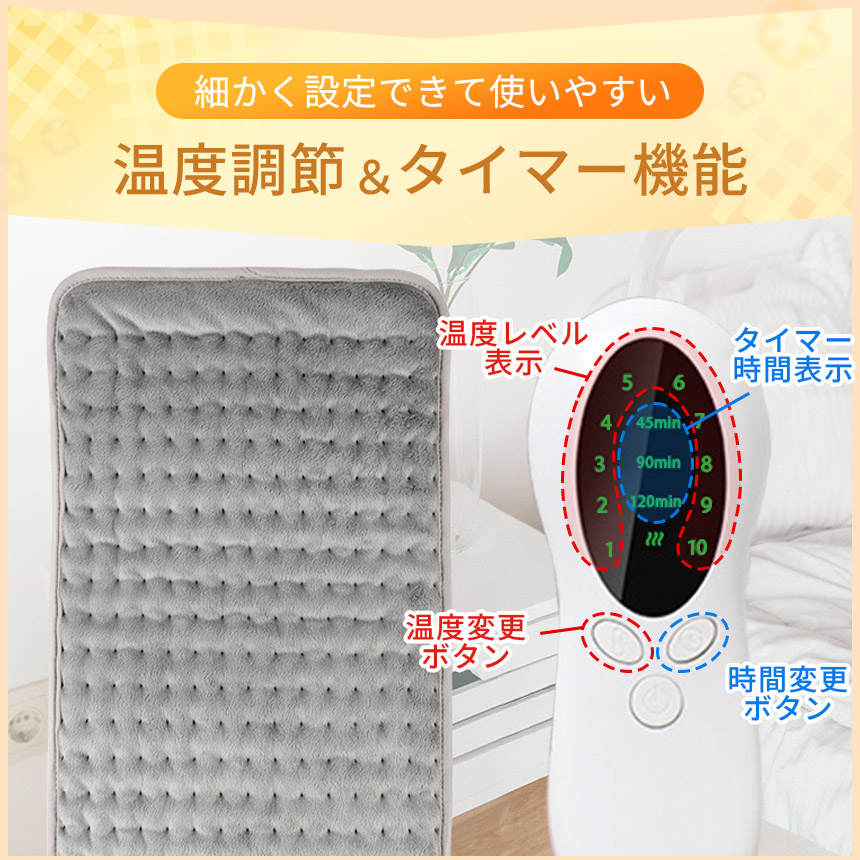 ホットマット PSE認証済み カーペット ブランケット タイマー機能付き 10段階温度調節 丸洗いOK 電気マット ホットカーペット 長方形 一人用 電熱 コンセント式 ひざ掛け 膝掛け デスク 足元 布団 毛布 ヒーター 防寒 ペット 犬 猫 座布団 羽織り 肩掛け