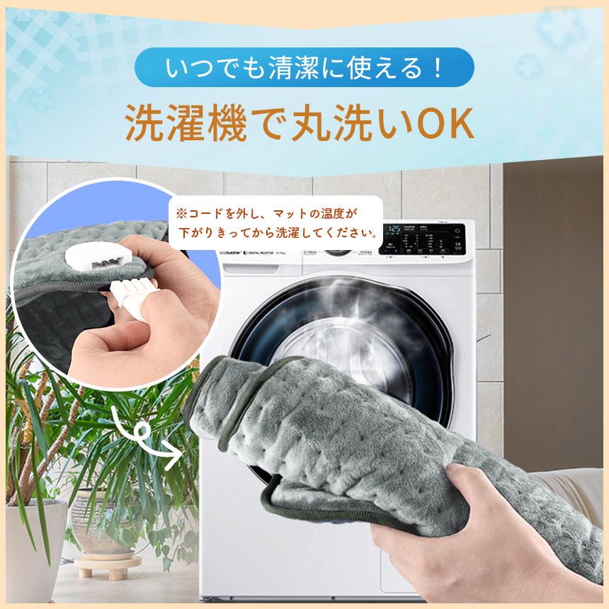・マットを洗う際はコードを取り外し、マットの温度が完全に下がりきってから洗ってください。