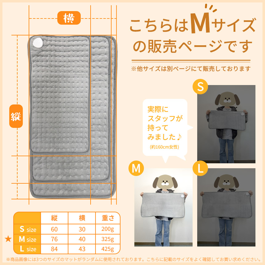 Sサイズ、Mサイズ、Lサイズの3種類からお選びいただけます。
