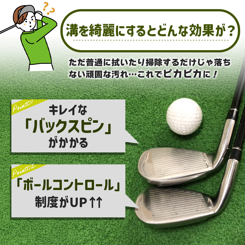 ウェッジを綺麗にすることでバックスピンがかかりやすくなりボールコントロールの制度も向上!