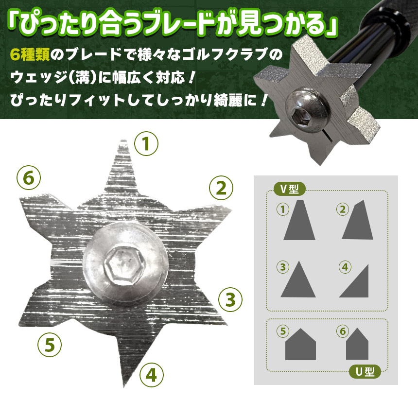 わずかに形・サイズの違う6種類のブレードが備わっているので、様々なドライバーに対応!
