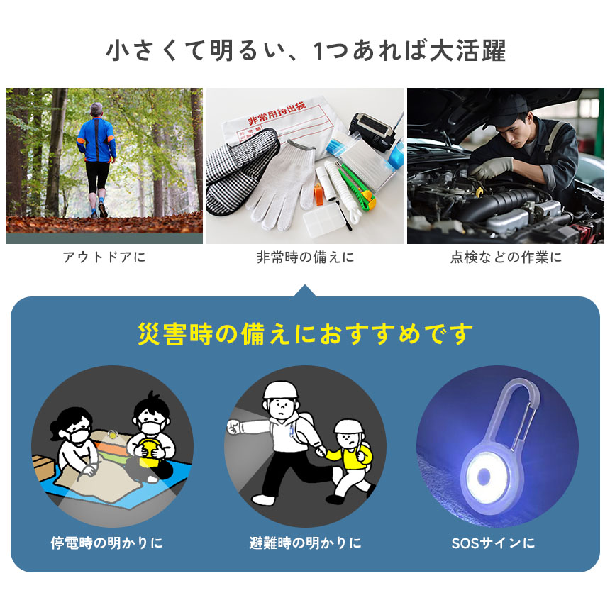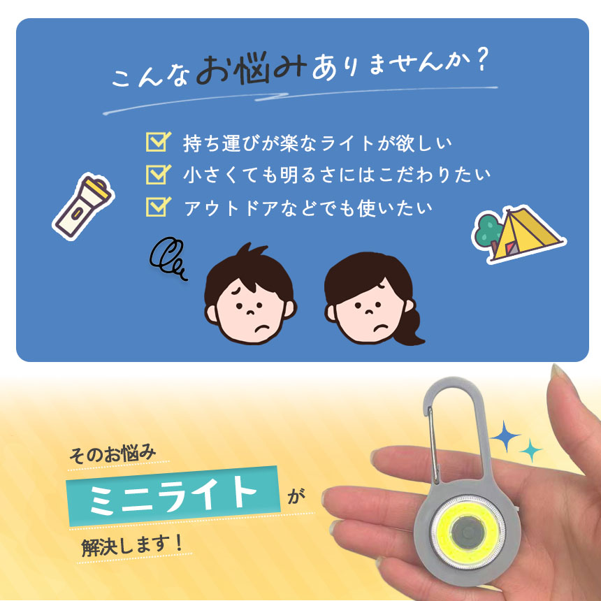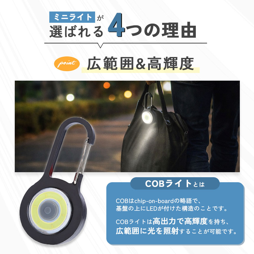 ミニライト 携帯用 ライト 通勤 通学 夜道 対策 防犯 小型 かばん 取り付け ランドセル リュック カラビナ付き 非常用 持ち歩き 暗い 帰宅時 安全 足元 照明 学生 社会人 携帯 キーホルダー COB LED 防災 アウトドア 緊急時 コンパクト 超軽量 ポケット 暗闇