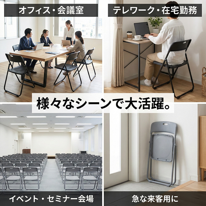 ・イベントで:セミナーや集会、屋外での簡易チェアとして。