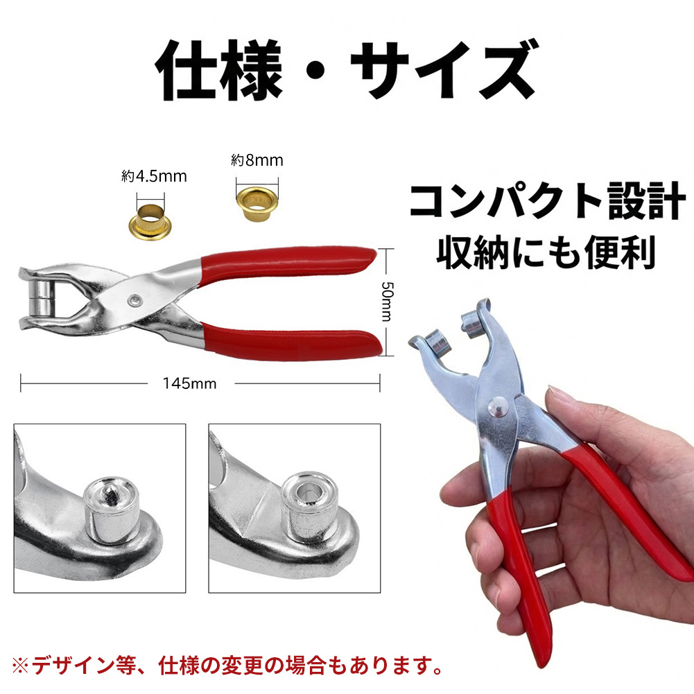 ハトメパンチ 4.5mm ハトメ 100個付 ハトメプライヤー 鳩目 穴あけ カシメ 工具 DIY レザークラフト 手芸 ベルト 靴 補修 アイレット プライヤー ハンドメイド 小型 14cm セット
