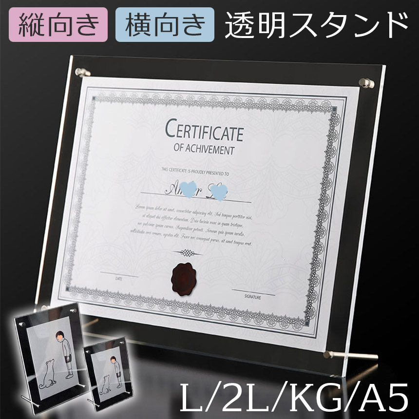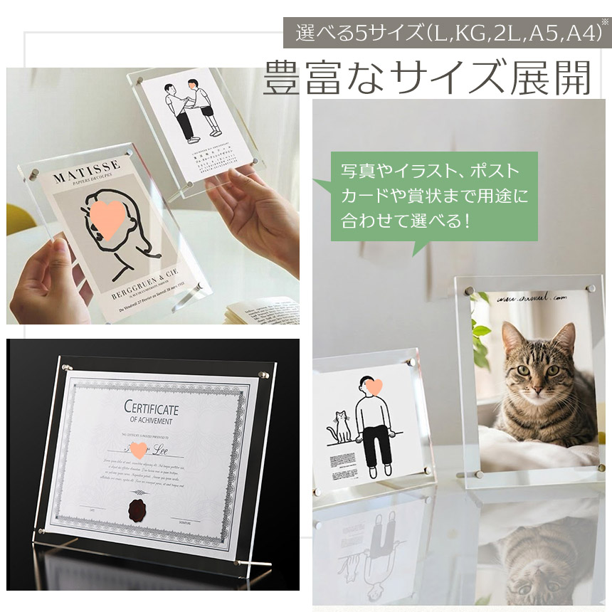 フォトスタンド 5サイズ選べる フォトフレーム クリア 透明 写真立て L 2L KG A5 A4 アクリル 写真 イラスト ポストカード 賞状 表彰