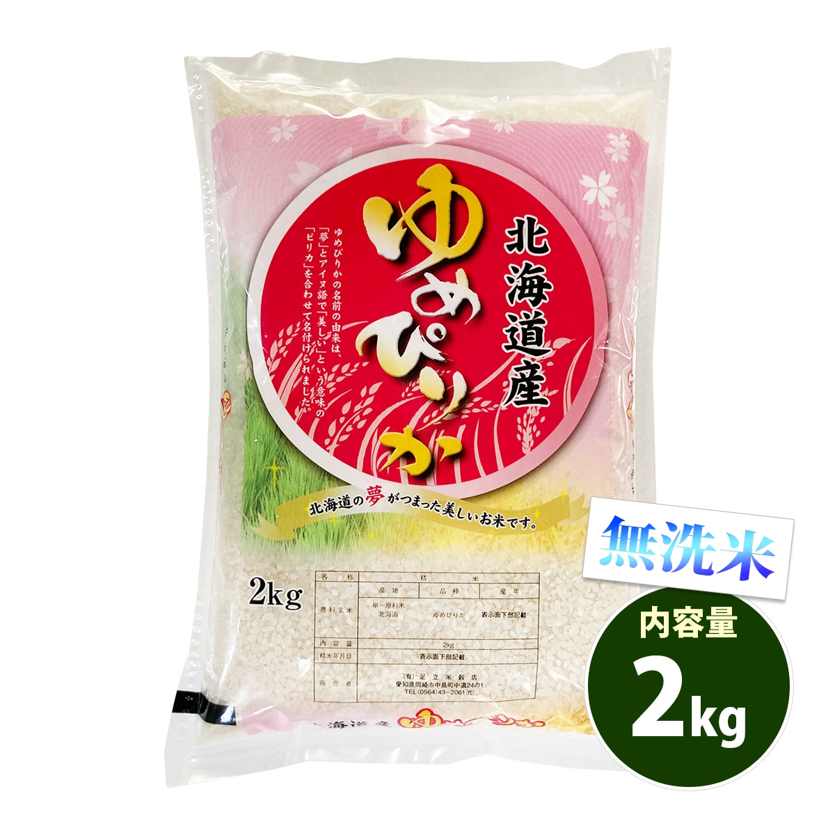 無洗米 2kg 送料無料 ゆめぴりか 北海道産 令和7年産 一等米 米 2キロ お米 あす着く食品 ポイント利用
