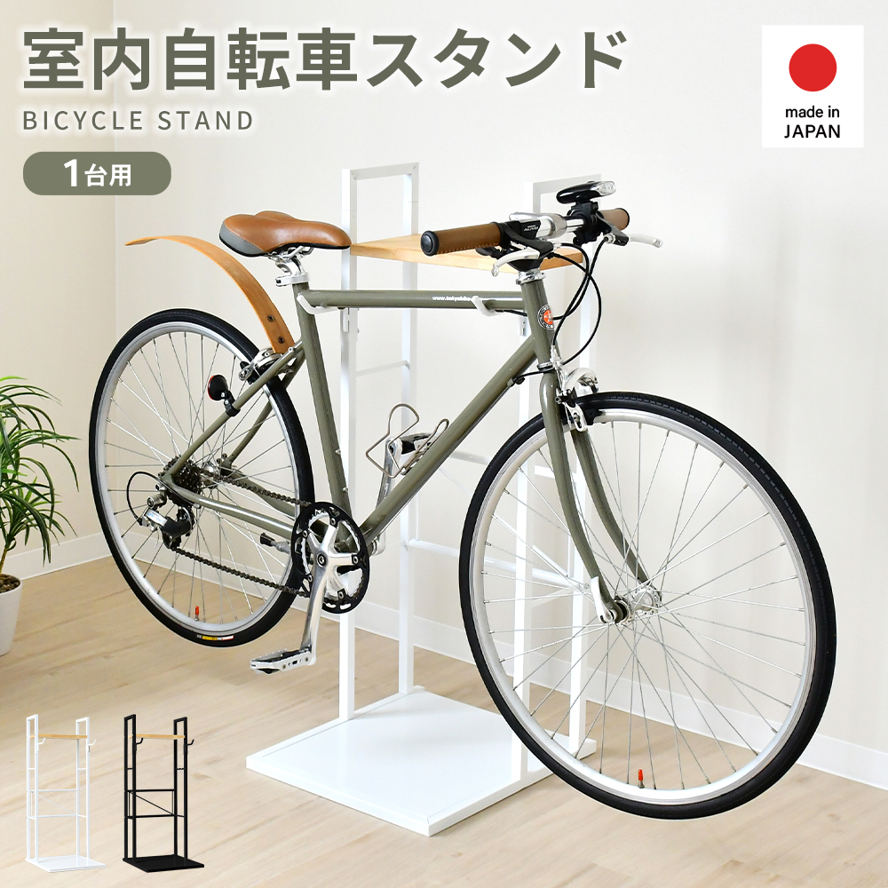 自転車 スタンド メンテナンス ディスプレイ 1台用 縦置き ロードバイク フック 棚付き 自転車ラック 室内 白 黒 日本製 足立製作所