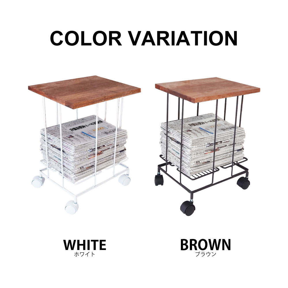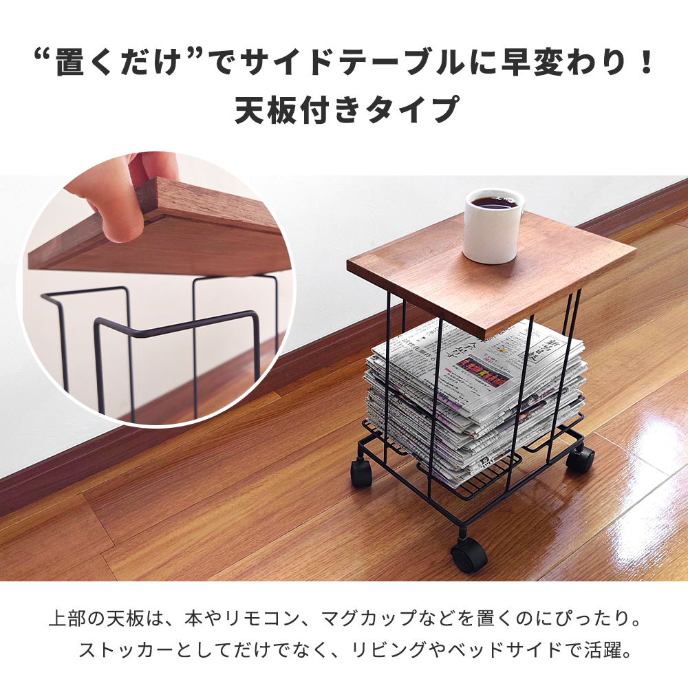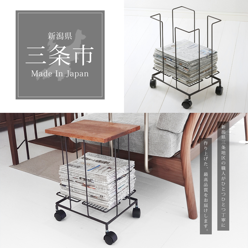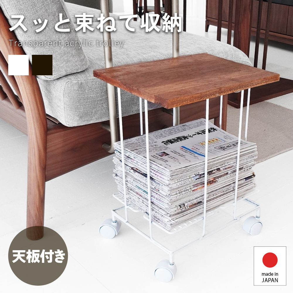 サイドテーブル にもなる 新聞ストッカー | ブラウン ホワイト 新生活 おしゃれ収納 天板付 新聞ラック 雑誌 コーヒーテーブル ワゴン 新聞紙 ストッカー 古紙 キャスター付き ジャパンディ アンティーク 北欧風 ナチュラル 金属製 木製 燕三条製 日本製 ポイント利用 母の日 父の日 爆買 敬老の日 プレゼント