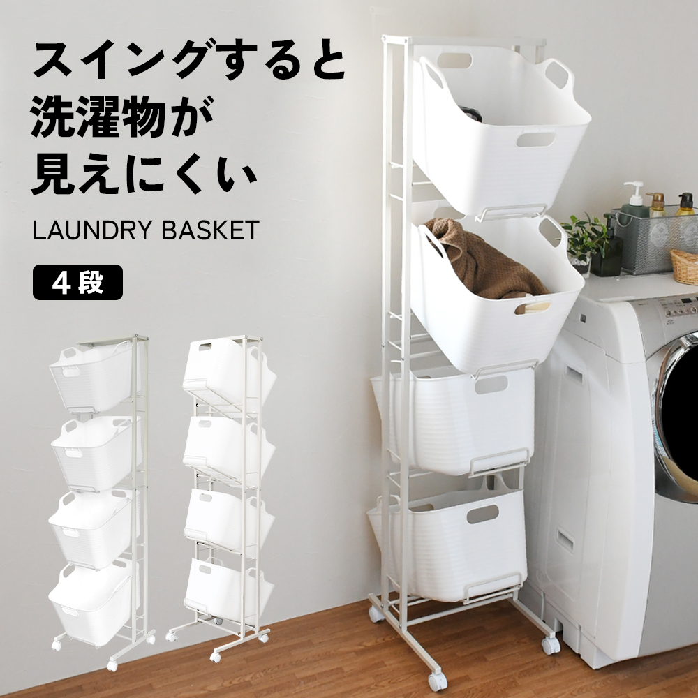 スイング式ランドリーバスケット 4段