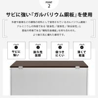 材質 | [背板・底板]ガルバリウム鋼板 [扉・前面板]ボンデ鋼板(メラミン焼付塗装) [支柱・丁番]スチール(メラミン焼付塗装) [取手・ビス]ステンレス |