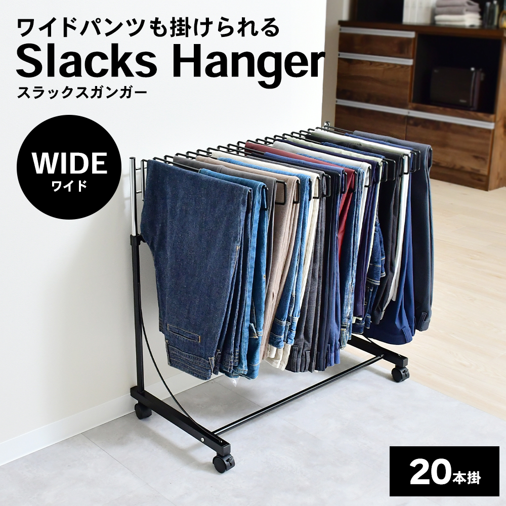 ワイドスラックスハンガーは、あなたの大切なワイドパンツを美しく保つための必需品です。広めにデザインされたこのハンガーは、通常のスラックスハンガーでは対応できないゆったりとしたシルエットのズボンをしっかりとサポート。パンツのラインが崩れず、シワも防げるので、いつでも綺麗な状態でお使いいただけます。しっかりとした作りで、重めのワイドパンツやスラックスも安定して支えます。ハンガーにポリエチレンコーティングを施しているので滑りにくくしっかり収納。シワを防いで整った状態をキープ。さらに、洗練されたシンプルなデザインは、どんなクローゼットにも馴染みやすく、収納空間をより美しく整理整頓できます。 | |