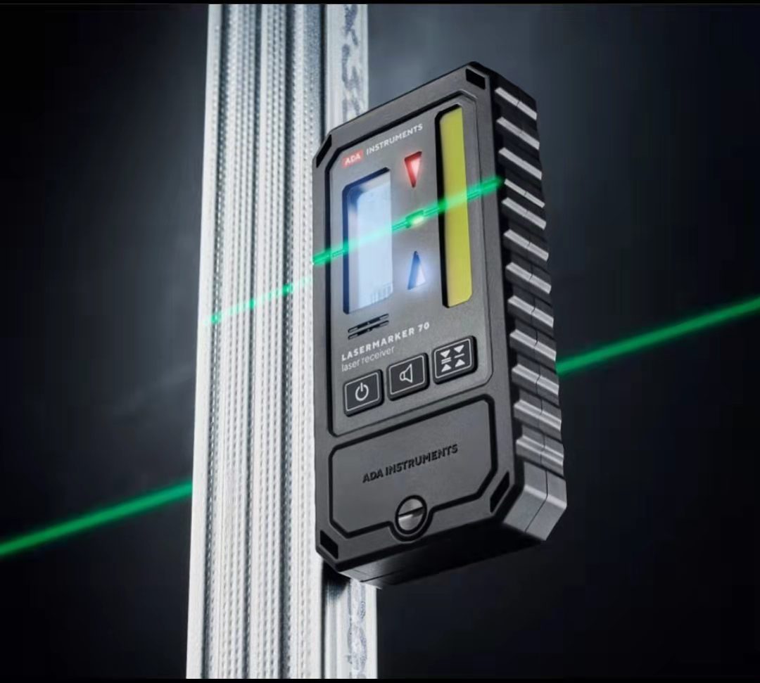 お持ちのレーザー墨出し器の出力(明るさ)によって最大70mまで受光できる。