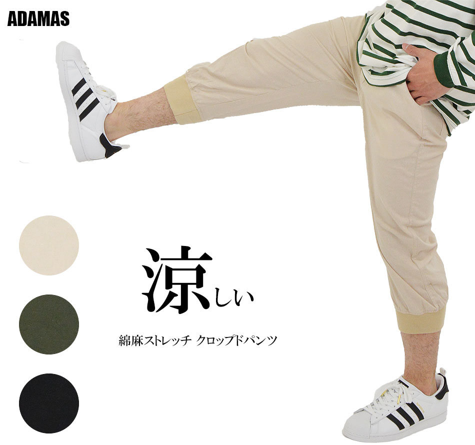七分丈 パンツ 裾リブ メンズ 綿麻 ストレッチ クロップドパンツ 7分丈パンツ 涼しい ズボン 夏用 イージーパンツ ウエストゴム ひざ下 ジョガーパンツ スポーツ