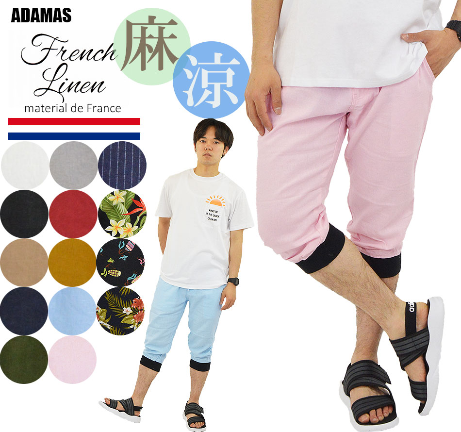 七分丈パンツ メンズ クロップドパンツ 麻 レーヨン ジョガーパンツ スボン 裾リブ 半パン クロップド パンツ 七分丈 イージーパンツ ウエストゴム パンツ 無地