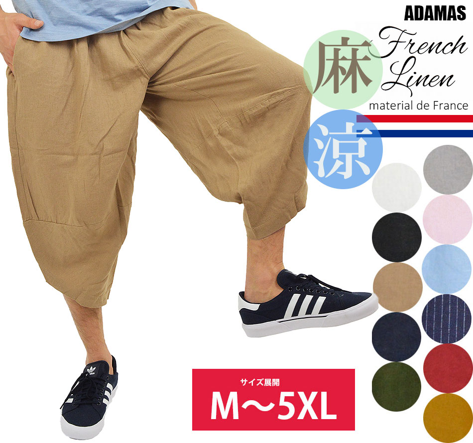 涼しい サルエルパンツ メンズ 麻 リネン パンツ 夏用 冷感 ゆったり リラックスパンツ イージーパンツ アラジンパンツ ワイドパンツ ズボン 大きめ 半端丈 薄手