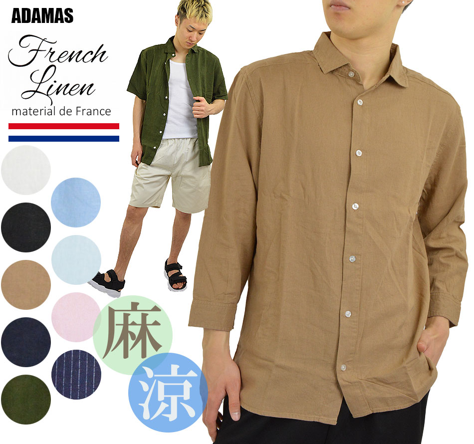 麻シャツ 七分袖シャツ 半袖シャツ メンズ 涼しい 柔らかい フレンチリネン 麻 レーヨン 春 夏 秋 冷感 七分袖 半袖 メンズシャツ 白シャツ 黒シャツ 夏シャツ