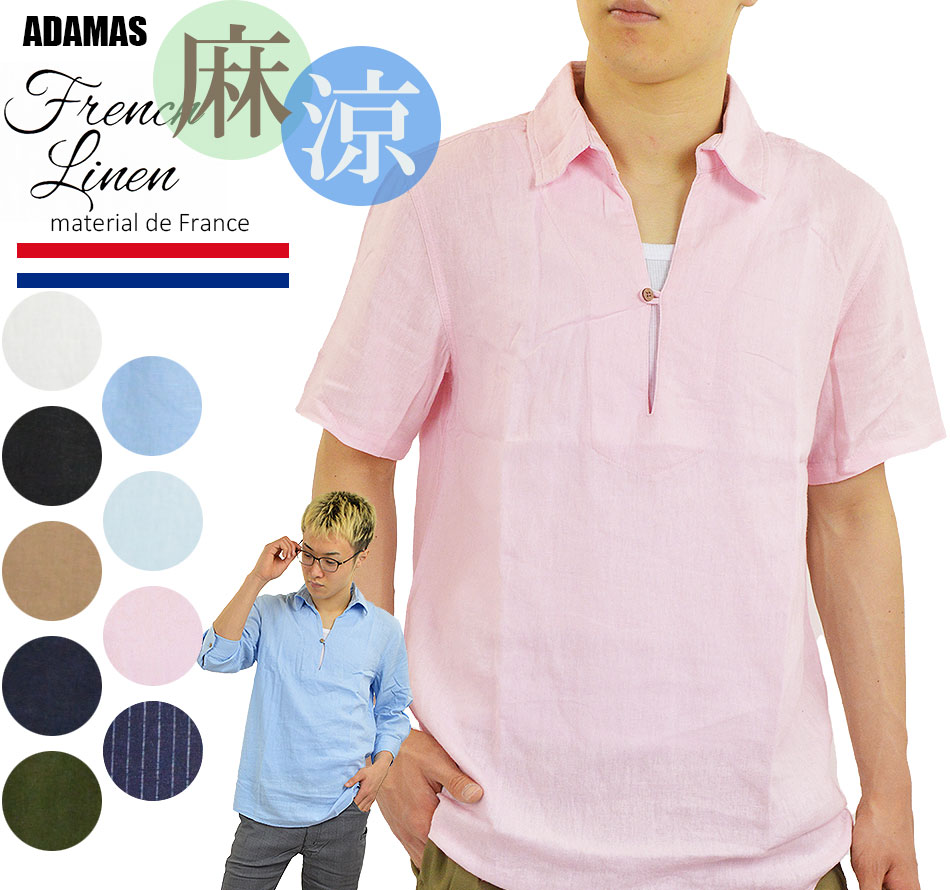 カプリシャツ 七分袖シャツ 半袖シャツ メンズ 麻シャツ 涼しい 冷感 夏シャツ 無地シャツ 白シャツ 黒シャツ カジュアルシャツ フレンチリネン メンズシャツ