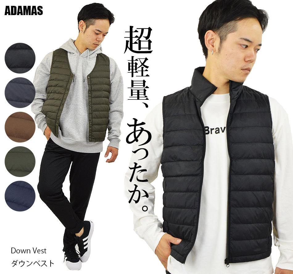ダウンベスト メンズ インナーダウン 軽量 暖かい 薄手 ライトダウンベスト スタンドカラー Vネックベスト リアルダウン 保温 防寒 暖かい インナーベスト 軽い