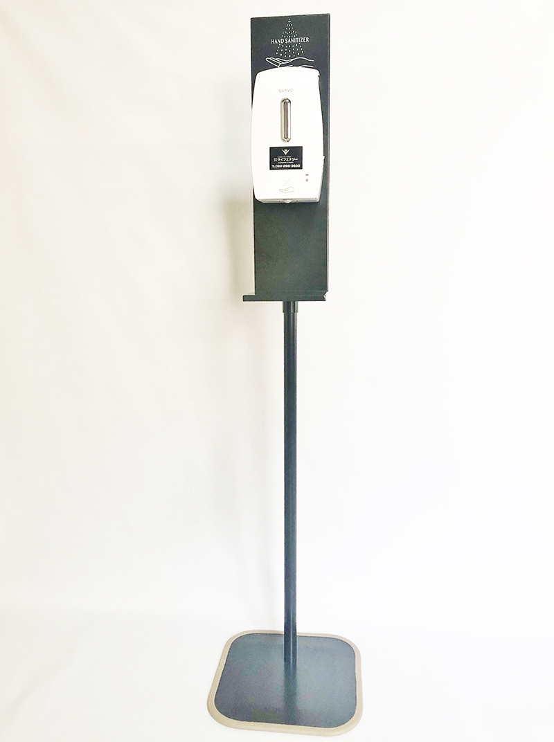 ・手をかざすだけでセンサーが反応し消毒液が噴霧。非接触なので安心です。