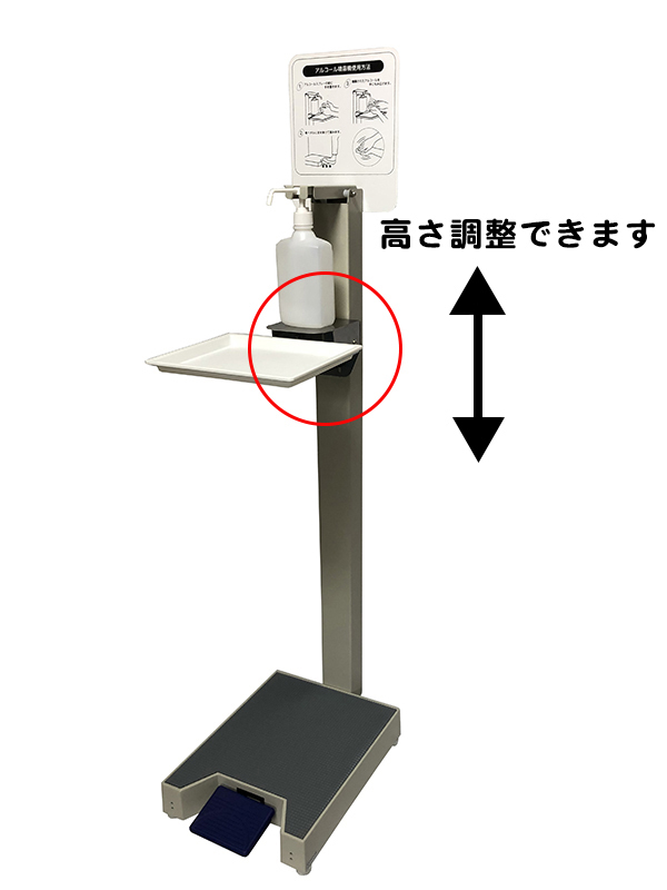・ペダルを踏んでアルコール液が噴霧するので衛生的に消毒できます。